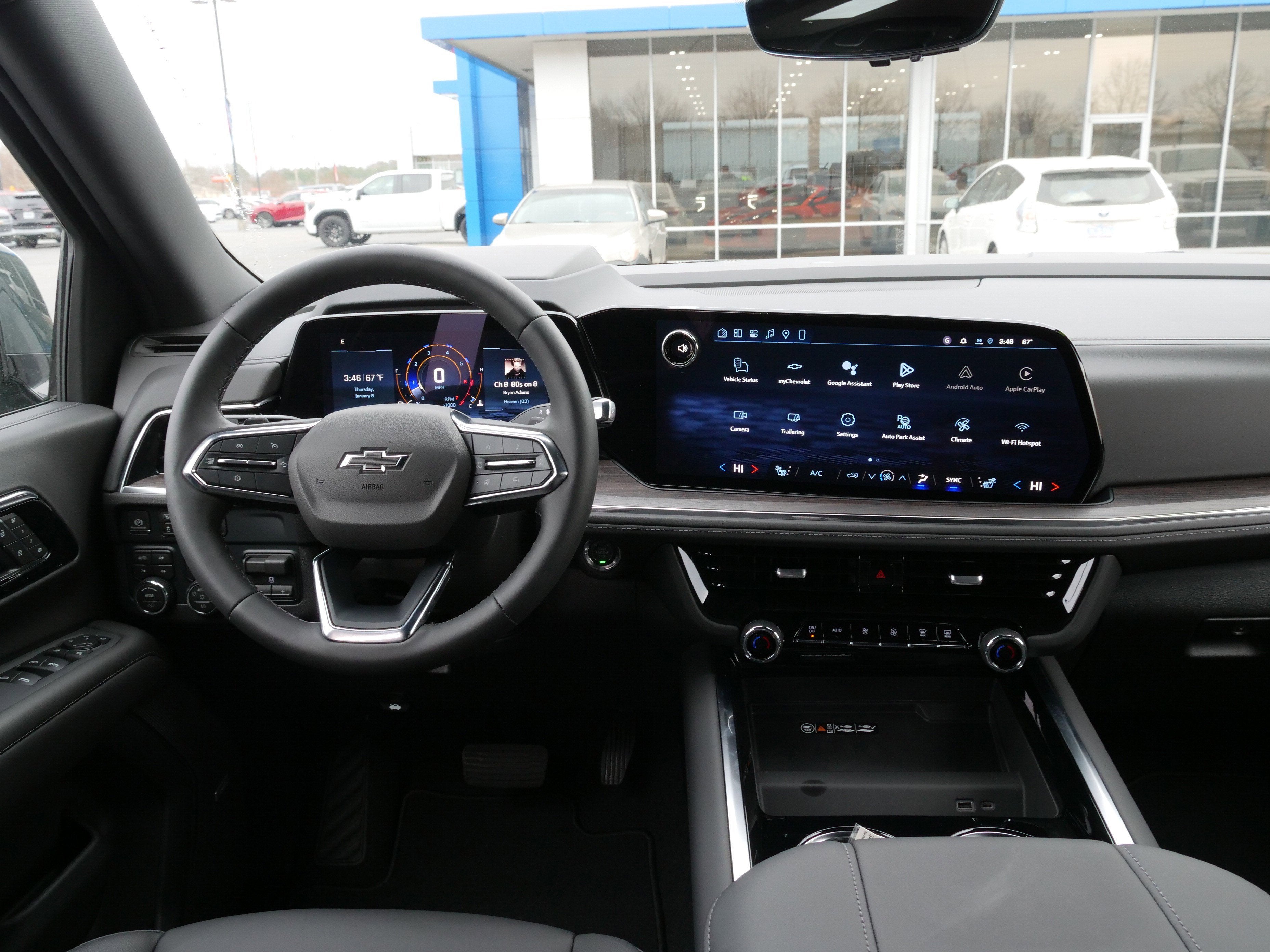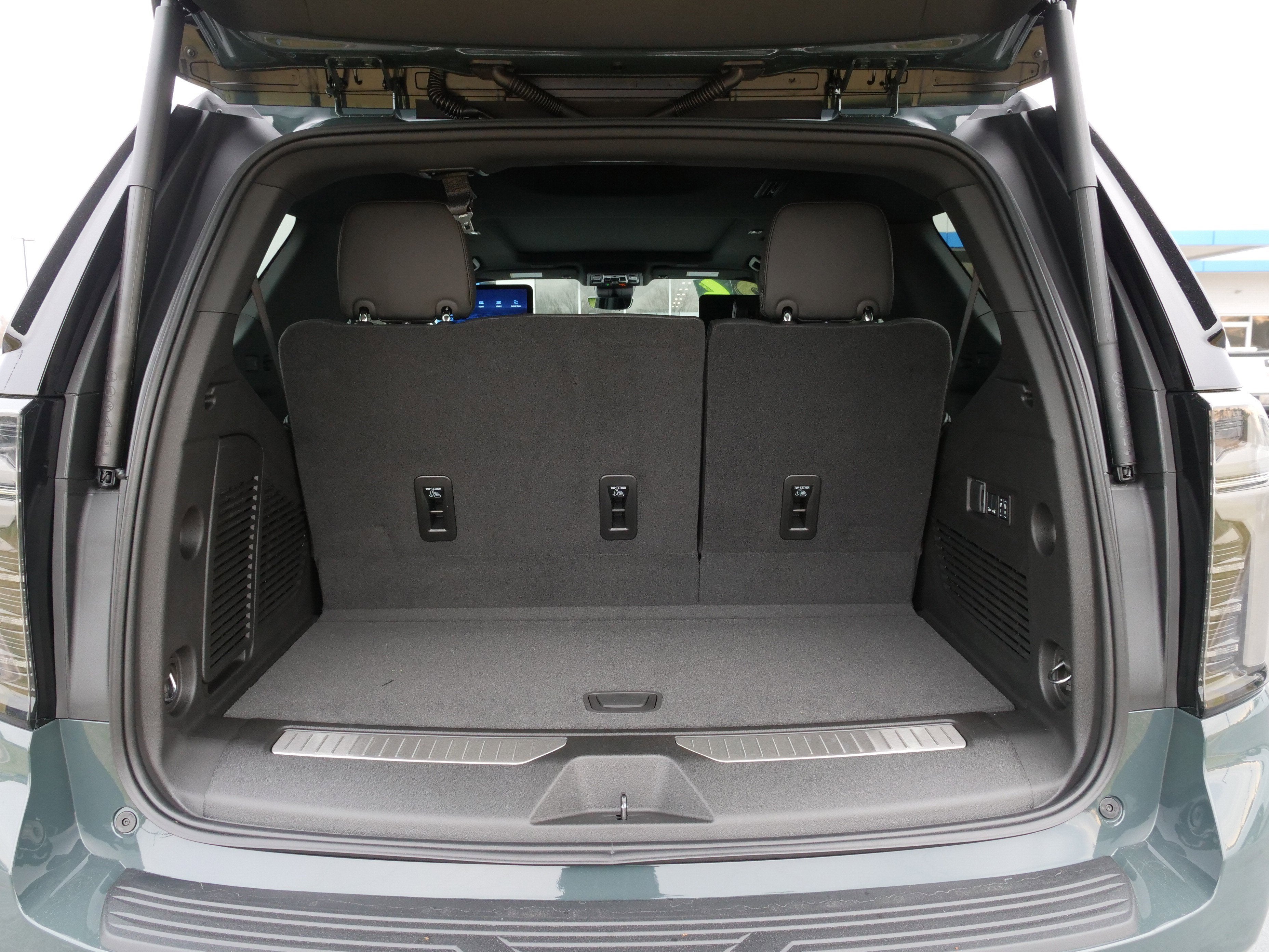 TECHNOLOGY PACKAGE Includes (DRZ) Rear Camera Mirror and (UV6) Head-Up Display.), COMFORT PACKAGE includes (A45) memory settings, (UQS) Bose 10-speaker Surround with CenterPoint, (DXR) outside heated power-adjustable, power-folding, body-color mirrors with driver-side auto-dimming and integrated turn signal indicators, (KI3) heated steering wheel, (KA6) second row outboard heated seats, (ATT) second row power 60/40 split-folding bench seats, (AS8) third row power 60/40 split-folding bench seats, (TGE) LED animated headlamps and (TAU) LED animated tail lamps , Bluetooth® for phone personal cell phone connectivity to vehicle audio system, TRANSMISSION, 10-SPEED AUTOMATIC electronically controlled with overdrive, includes Traction Select System including tow/haul (STD), SUNROOF, POWER PANORAMIC, DUAL-PANE, TILT-SLIDING with express-open and close and power sunshade, SEATS, SECOND ROW BUCKET, POWER RELEASE, ENGINE, 5.3L ECOTEC3 V8 with Dynamic Fuel Management, Direct Injection and Variable Valve Timing, includes aluminum block construction (355 hp [265 kW] @ 5600 rpm, 383 lb-ft of torque [518 Nm] @ 4100 rpm) (STD), CYPRESS GRAY, Z71 exterior features include Black front and rear bowtie emblems, unique front grille with Z71 badging, unique front fascia, Black nameplate badging and unique Z71 fender badging, Wireless Phone Charging, for portable devices.