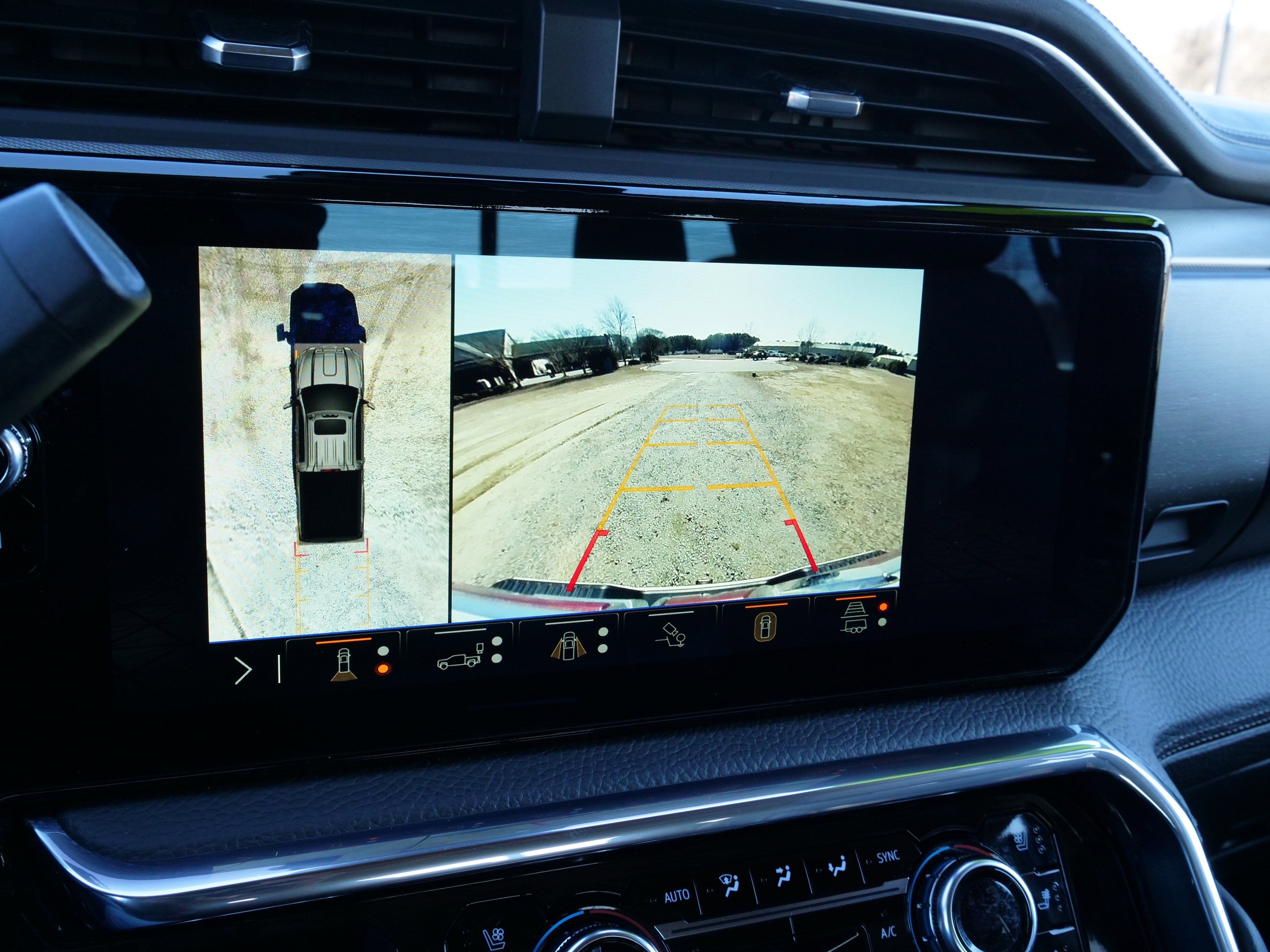 - Allows driver to see inside the cargo bed on the infotainment display to help with 5th wheel or gooseneck hitching and to check cargo